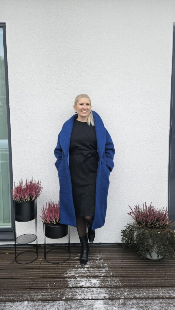 Vastapainona pehmeille sävyille nähdään myös voimakas kobaltin sininen, joka tuo pukeutumiseen rohkeutta ja itsevarmuutta. Vahvat, jopa hieman keskenään “riitelevät” väriyhdistelmät tuovat kiinnostavaa energiaa ja persoonallisuutta. Kuvissa mittatilauksena valmistettu villakangastakki, joka ei takuulla jää huomaamatta!