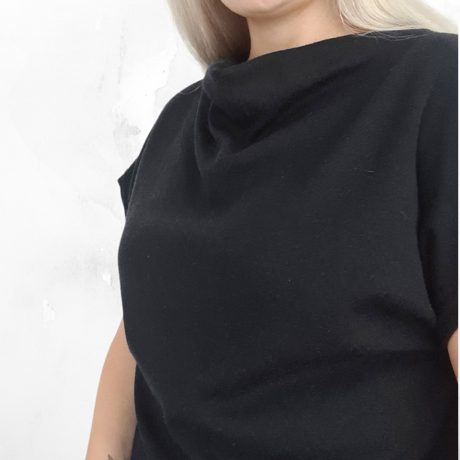 Kuvan malli on 163 cm pitkä ja hänellä on päällään M koko. Koska merinovilla on hyvin joustavaa materiaali pystyt kokojen avulla valitsemaan joko tyköistuvamman (valitse tällöin yksi koko normaalia pienempi) tai ihanan oversize mallin (tällöin valinta on normaalia kokoa suurempi).